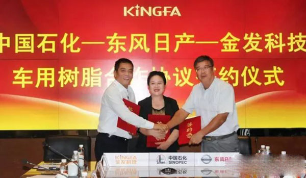 中國石化化工銷售有限公司、東風日產乘用車公司和金發科技在7月12日舉行了新版三方CRP合作協議簽約儀式,并就車用樹脂產業鏈合作進行交流。