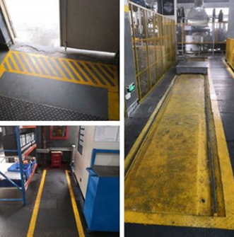 除了要求應急通道與消防器材的警示線必須符合相關標準,我們還采用了在部分高風險作業區域(如熔爐軌車等)加劃、填滿黃色警示線的方式,以增強視覺沖擊,更顯著地提示風險。