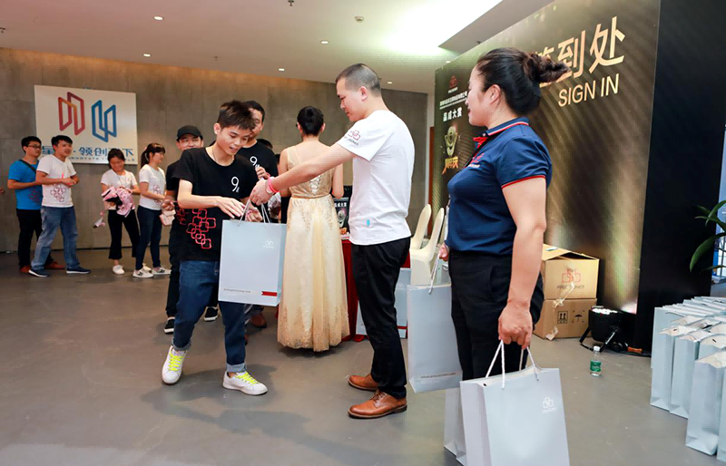 慶典開場之前,所有參會人員在門口領取了精美的伴手禮,由工作人員為其佩戴紀念手環,在簽名墻簽名并合影留念。7月12日下午16點整,伴隨著勁爆的開場舞表演,品成九周年慶典正式拉開序幕,給人以震撼的視覺沖擊。