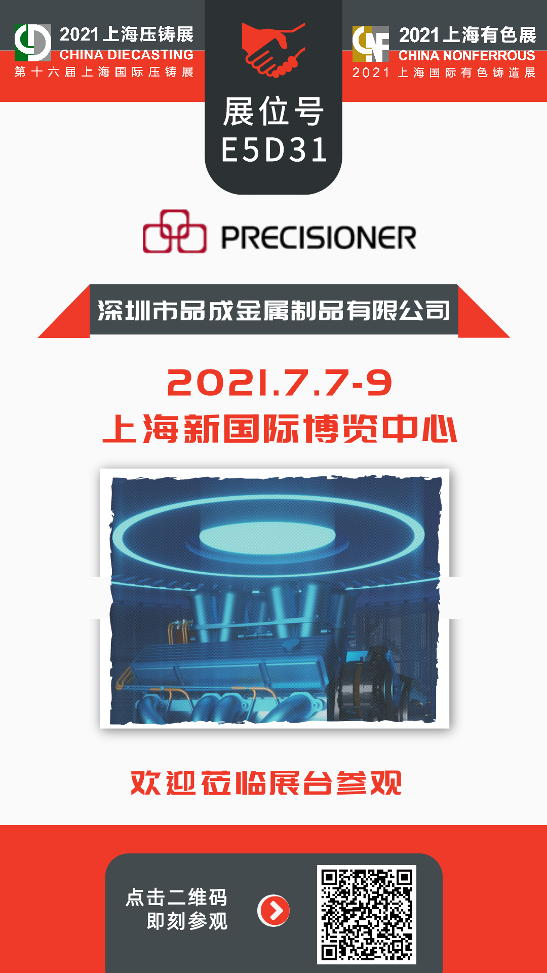 品成金屬將于2021年7月7日-9日參加第十六屆上海國際壓鑄展&2021上海國際有色鑄造展,展位號為E5D31。該展會將全方位展示壓鑄及有色鑄造全產業鏈解決方案,促進企業相互學習、交流碰撞和集智發展,引領行業未來發展新趨勢?,F誠邀各位行業人士蒞臨我們的展位參觀,品成全體員工恭候您的到來,一起攜手挑戰,共創未來!