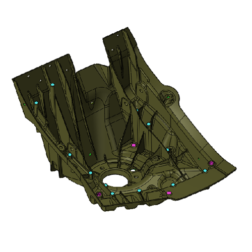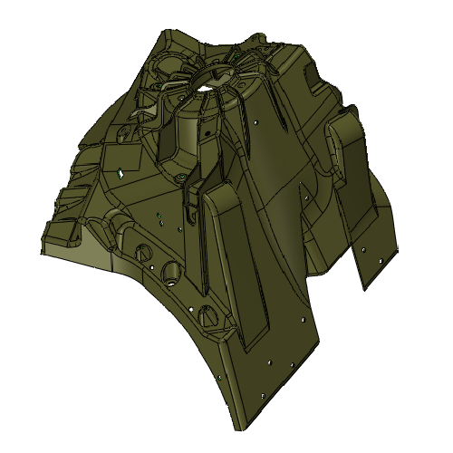 半固態成型薄壁大產品,三板模結構模具,特殊的流道倒扣結構保證了開模中使用機械力與流道自動拉斷,且使用特殊的扣機機構確保模具在開模拉斷流道的過程中,后模與前模板不分開,另所生產的產品無需T6熱處理可達到材料性能要求。